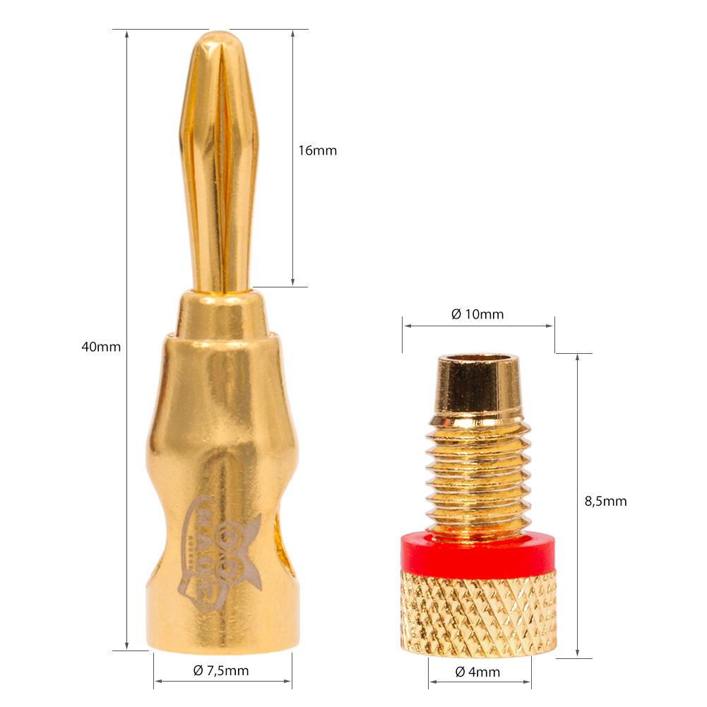 NAUC Bananenstecker 4mm schraubbar 24K vergoldet Lautsprecherkabel 8x Stecker